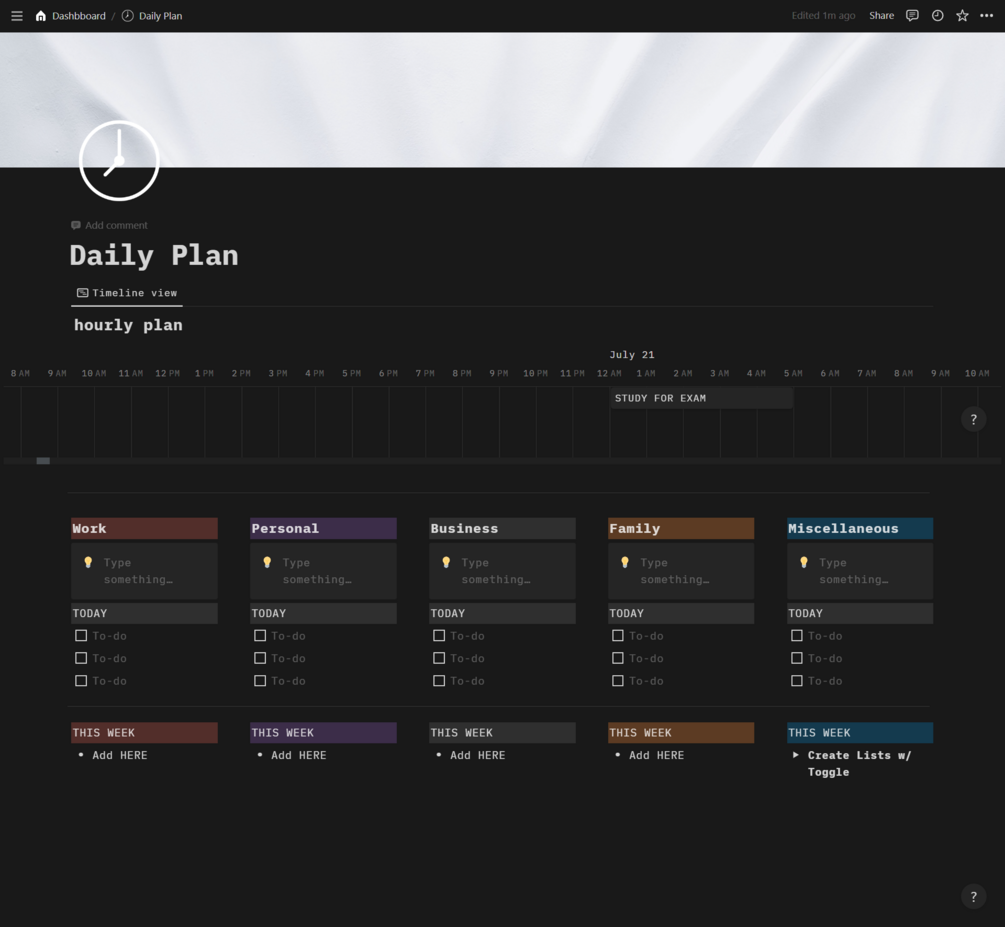 The fastest and most organized way to manage your life. All the tools you need in just one place, From work to personal entertainment, you can keep a track of everything this one template.